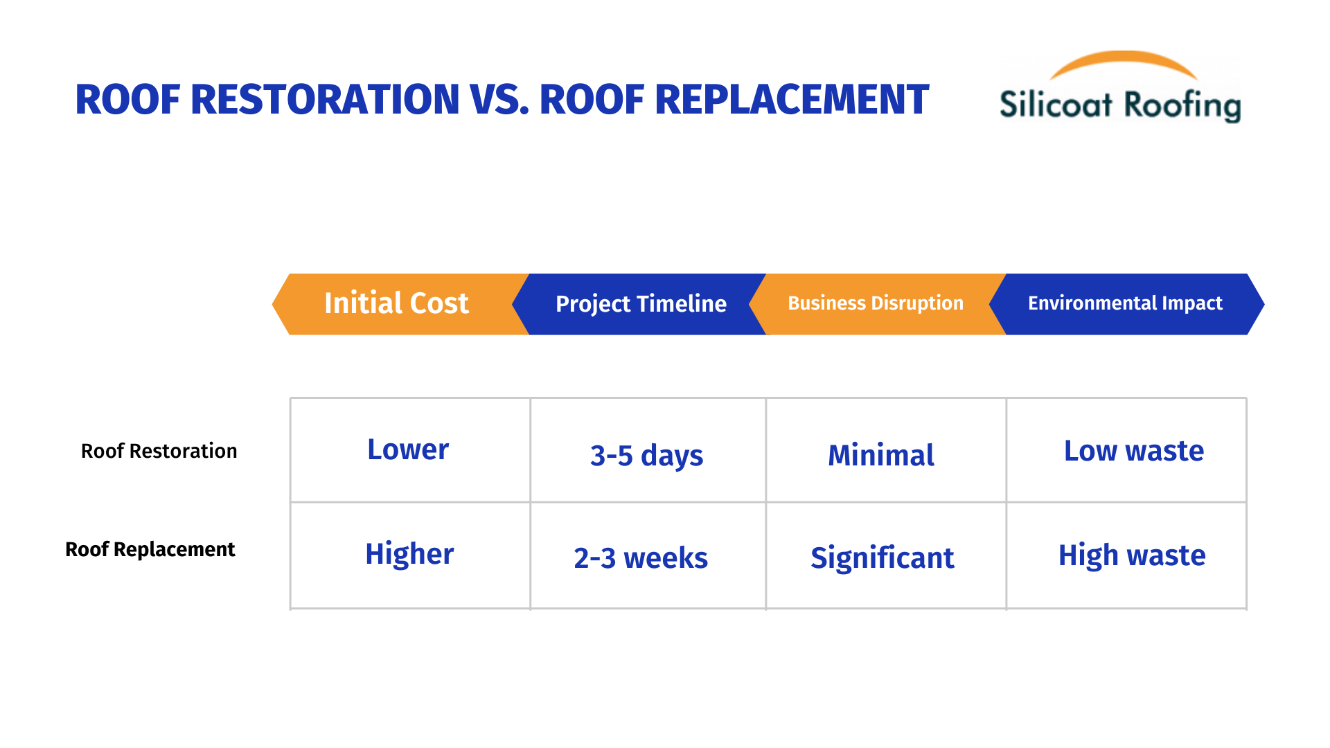 When facing roof problems, understanding your options helps you make financially sound decisions that protect both your building and your bottom line. Let’s compare roof restoration against full replacement to help you determine which approach makes the most sense for your specific situation.